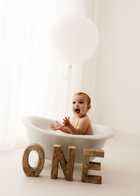 Your baby will have a glorious time during their cake smash session. There will be lots of singing, dancing, peek-a-boo's, followed by a good old splash in the bath
